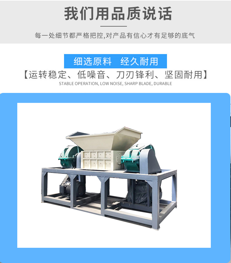 1、厚重动刀,破碎效率高,刀具均采用合金钢铸造,坚固使用寿命长。